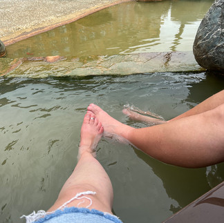 Onsen (natural hot springs in Japan) are new for us - I am a bit on the shy side and there are no bathing suits allowed… and we have embraced them!! Well - twice!! And today we took in the “Foot Onsen” along the boardwalk in front of the lake (you can wear clothes - lol!! So cooool!!